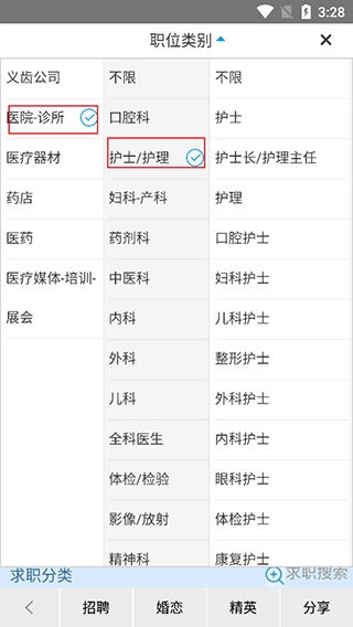 2、点击"招聘类别"选项,选择您需要的求职分类
