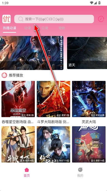 1.安装并打开优秀动漫,可以看到首页上方有着热播动漫、动漫、日漫、电影等板块内容。