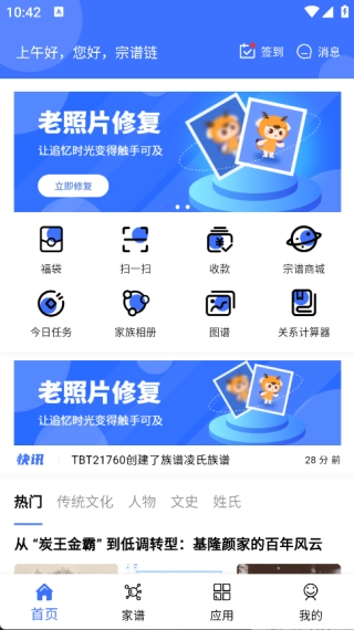 宗谱链是一款专注于家谱文化传承与发展的创新应用软件。它借助线上数字化手段,为用户打造了一个便捷高效的家谱管理与传承平台。同时,该软件还配备了多种实用功能服务,既能满足用户在家族文化传承中的多样化需求,也为用户带来了丰富的福利与乐趣。