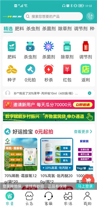 2、进入首页,为用户提供了超多农产用品,种类非常齐全,包含各种农药,肥料,杀虫剂,除草剂,工具等,用户需要的都可以在这里买到,有需要的用户还可以进行搜索。