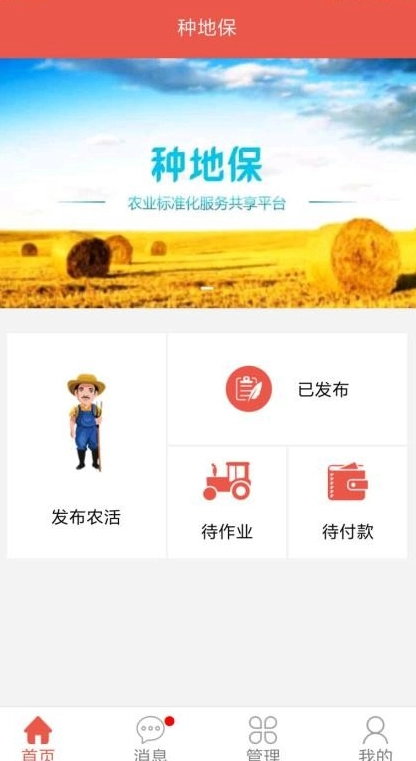 种地保是一个为用户提供各种农业服务的软件,使他们更容易操作农业机械,方便农民种植作物。该应用程序具有多种功能。用户可以在这里发布各种信息,寻找服务人员帮助自己解决各种农业种植问题,提升自己的种植体验。用户可以通过软件查看自己的各种任务内容,快速了解自己的订单接受情况,及时执行任务,赚取收入。在这里,用户还可以找到各种订单信息,快速了解每个订单的内容。