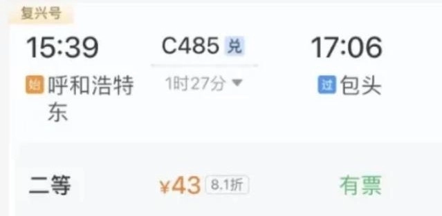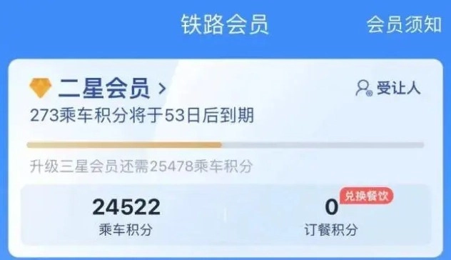 乘车积分=票面价格×5,举个例子,呼和浩特到包头的G485次列车,二等座的票价为43元,实际乘车到站后将获得积分为215