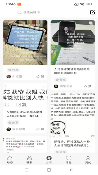 3、优质软件接入平台后,需进入动态板块,各类互动功能也都配备齐全。