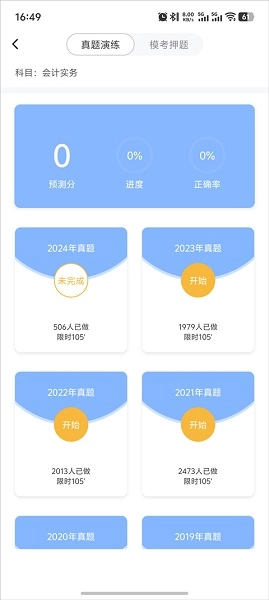 3、然后点击“真题模考”,选择要做的真题试卷。