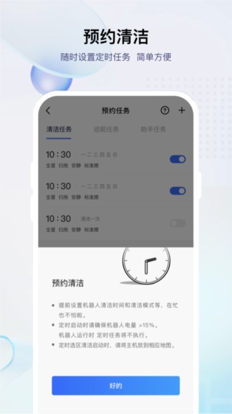 3、这里还可以预约清洁模式,助力用户省心的清洁打扫。