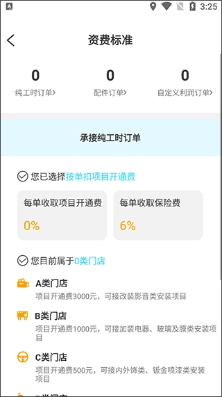 1、首先,打开有马师傅之家,在主页界面找到订单管理板块,点击其中的“资费标准”按钮;