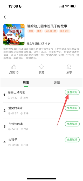 3、在故事详情页面,点击免费试听按钮后,若用户尚未登录,则会跳转至登录页面。
