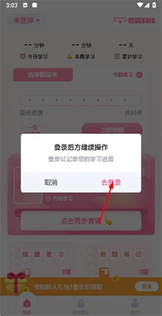 1、闯关练习题题库更新,更多同步知识点等你来背。