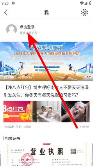 1、启动自贡在线应用,点击界面左上角的头像图标,即可进入个人中心页面。