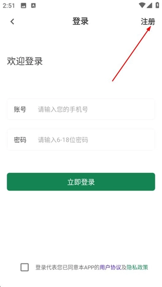 3、在登录页面,点击右上角的注册选项,进入注册页面。