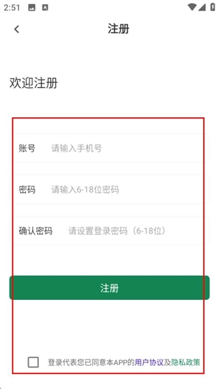 4、进入注册页面后,填写相关信息并勾选协议,随后点击注册按钮即可完成账号注册。
