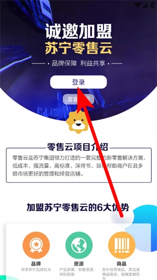 1、打开零售云管家,点击页面登录,进入登录页面。