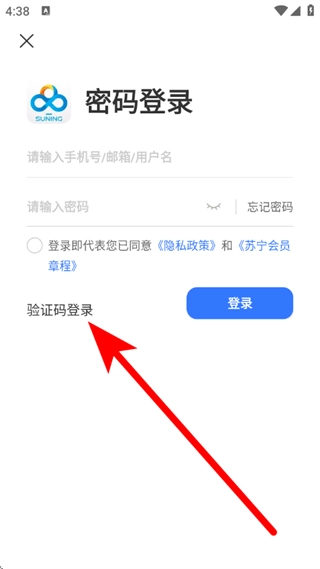 2、在密码登录页面,点击验证码登录选项,即可进入验证码登录页面。