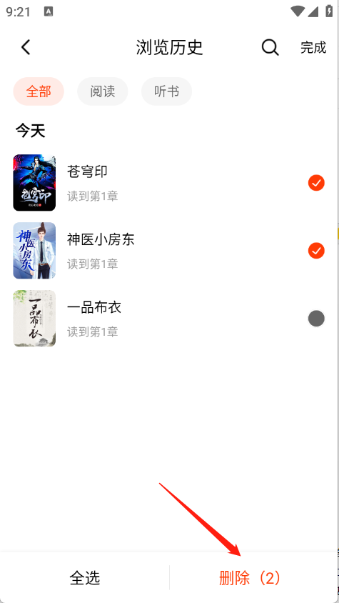3、选择要删除的阅读记录即可。