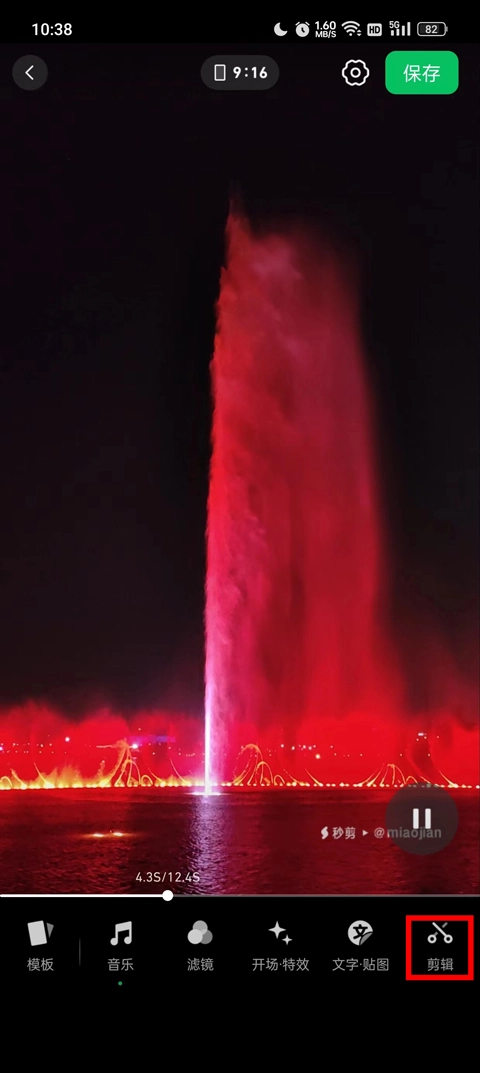 2、选择手机中的视频、照片内容进入编辑页面,点击其中的剪辑功能。