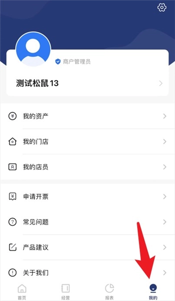 5、在“我的”页面中可管理资产、门店、员工及其他设置,是商户的个人中心。