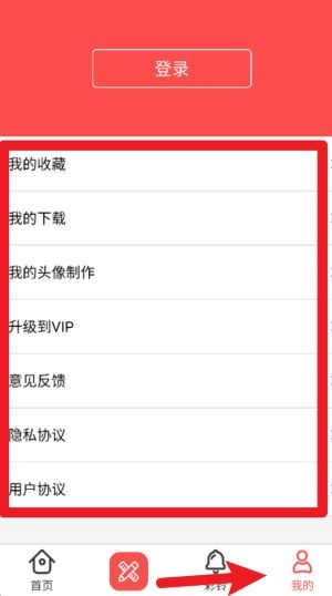 1、点击右下角我的按钮可进入个人中心页面,在此页面中可查看收藏、记录并进行头像制作和升级操作。
