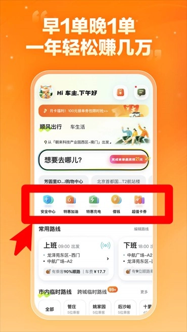 1、收入快速到账:通过顺路接单赚取收益,收入安全且快速到账。