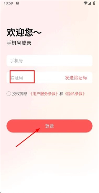 3、在验证码输入框中填写收到的验证码,点击登录完成账号的登录操作。
