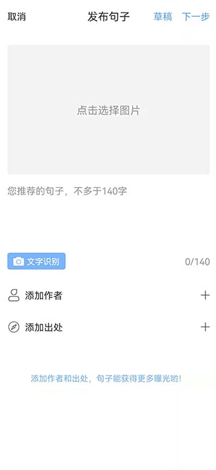 2、点击发布,用户可以在这里进行一个句子的创作,并且支持添加图片;