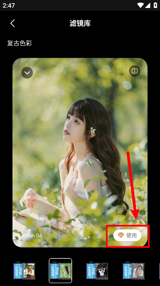 4、选择并打开所需滤镜后,点击"使用"按钮。