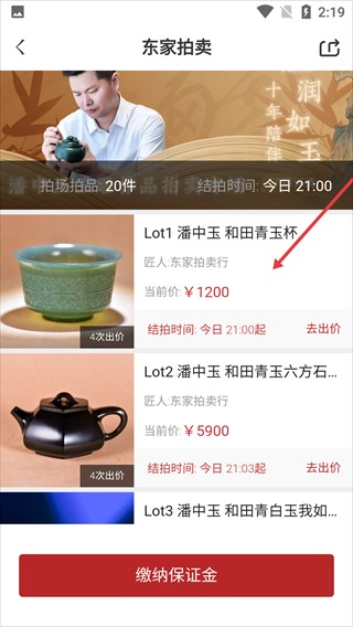 3、进入拍品列表页面,选择目标拍品。