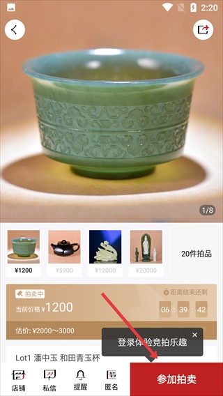 4、点击底部【参加拍卖】按钮,开始竞拍流程。