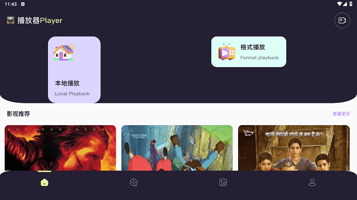 首页设有影视推荐板块,若想了解更多相关内容,可点击右侧的紫色“查看更多”按钮。