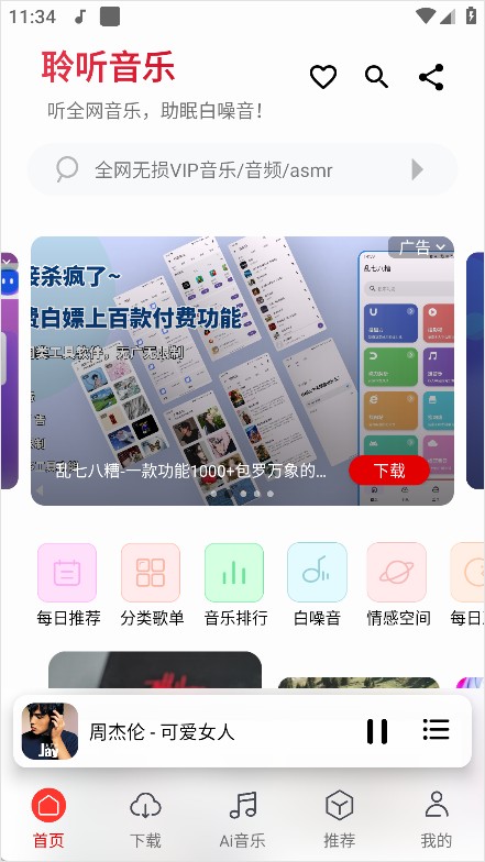 2. 在线听音乐,你可以在上网的同时听任何类型的音乐。