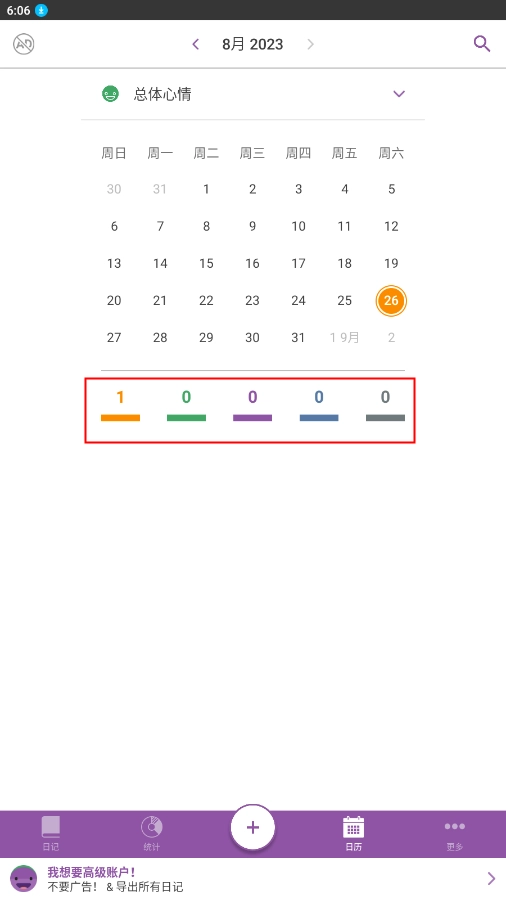 6、“日历”页面中,能更直观呈现心情总体变化;