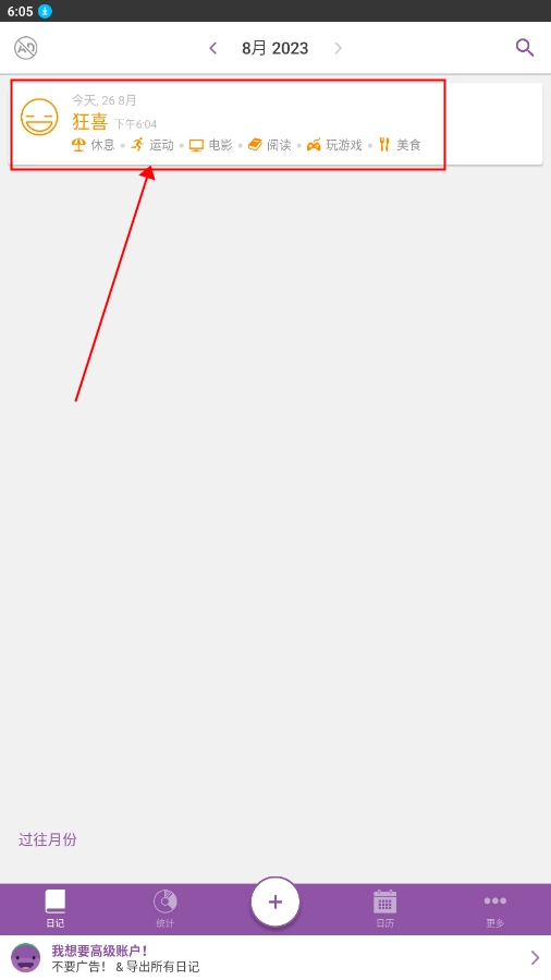 5、点击中间的“+”号,既可以编辑当天的日记,也能在“其他日期”选项里选择想要记录的日期。