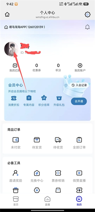 2、在个人中心页面,点击个人头像进入账户信息页面。
