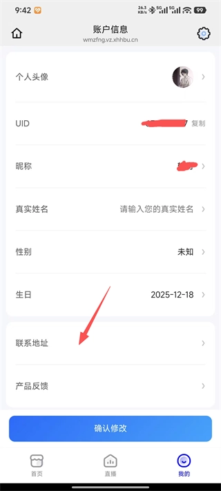 3、在账户信息页面,点击联系地址选项进入我的地址页面。
