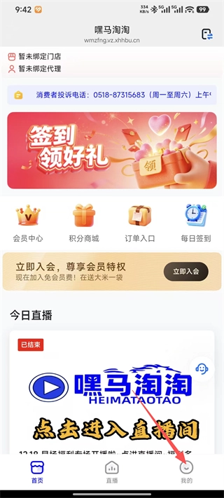 1、在嘿马淘淘首页,点击底部我的选项进入个人中心页面。
