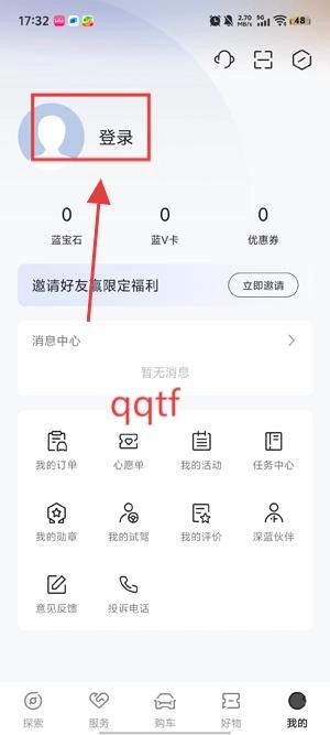 1、打开你的深蓝汽车,在我的界面点击登录功能。
