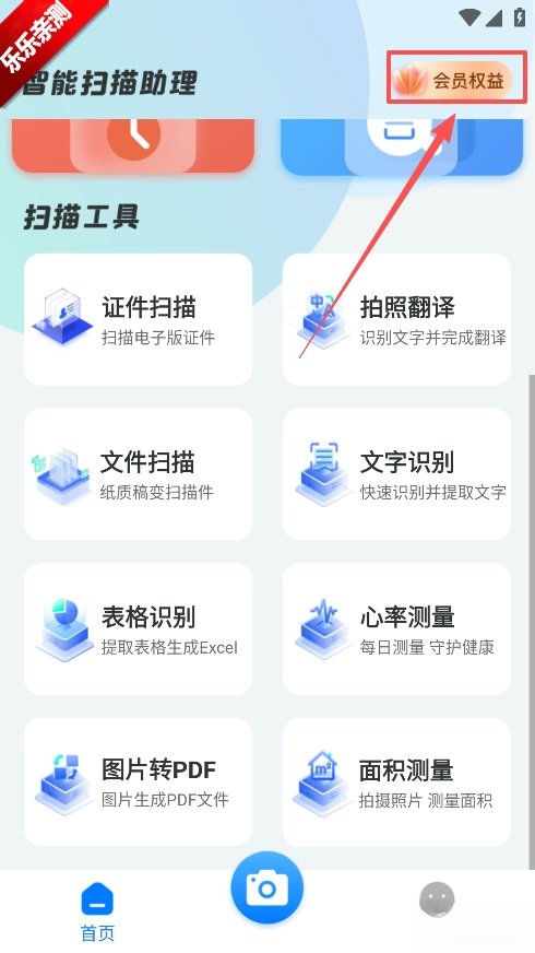 1、打开软件点击右上角的会员权益