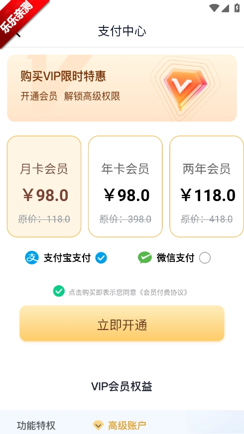 4、选择立即开通后即可完成