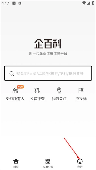 1、在企百科首页,点击底部我的选项,进入个人中心页面。