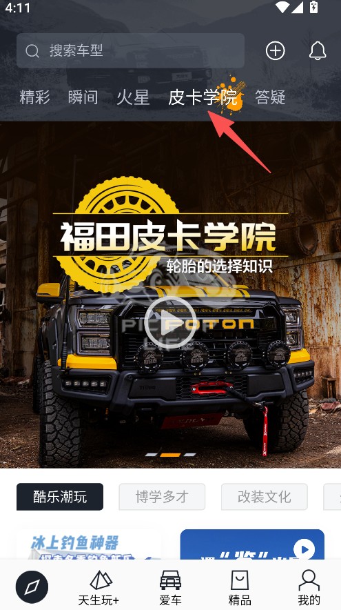 2. 皮卡学院:覆盖皮卡功能的全场景,趣味短视频带您领略别样皮卡魅力。设有“酷趣新潮玩具、改装文化、越野探险、实用百搭”四大板块,为您答疑解惑,丰富知识与多元玩法等您探索解锁。