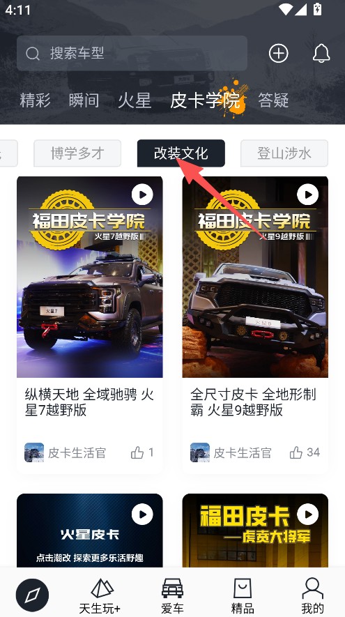 2、在皮卡学院页,选择改装文化分类。