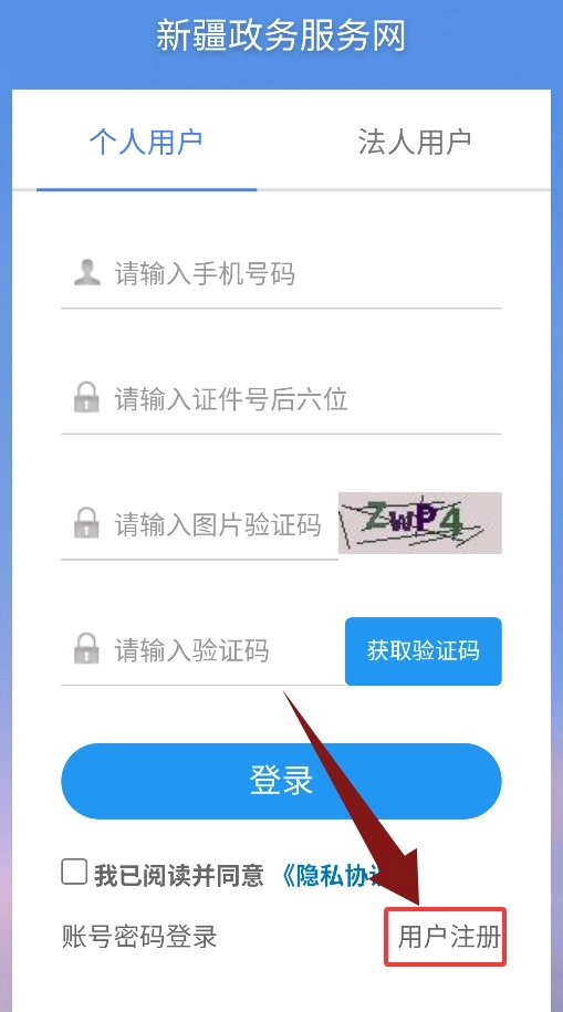 2、进入个人用户界面后,点击右下角的“用户注册”按钮,即可开启注册流程。