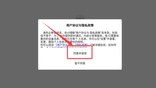 1、点击同意并接受按钮进入。