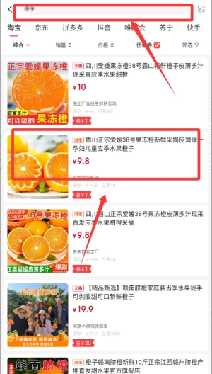 3、输入需要购买的商品名点击搜索到的商品进入。