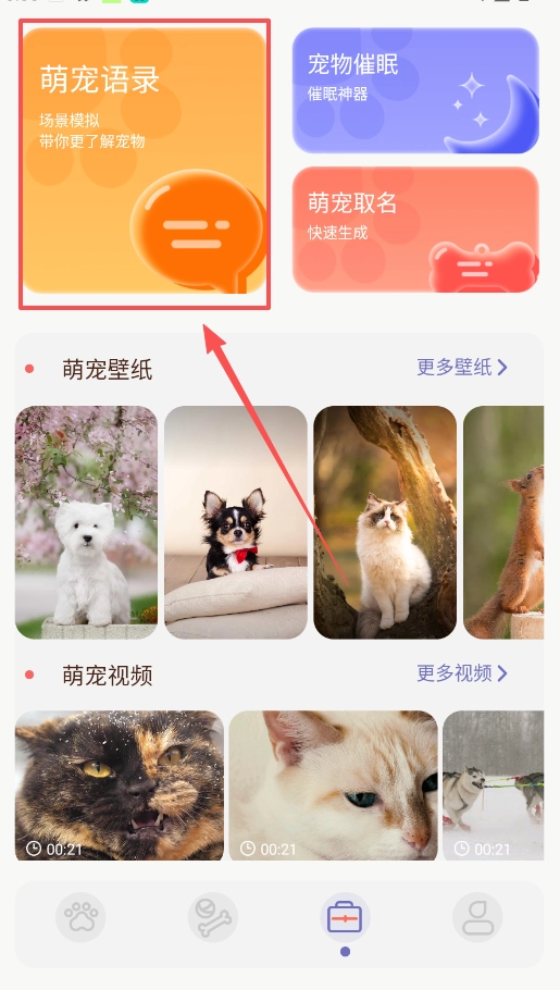 三、探寻娱乐属性与实用工具的融合。该软件设有多样的趣味板块,用户可浏览萌宠语录、体验场景模拟游戏,同时还配备了宠物催眠及智能取名等实用工具。