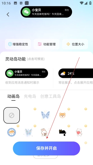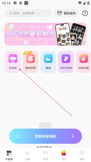 1、打开ColorfulWidget彩虹组件应用,接着点击界面上的【灵动岛】选项。