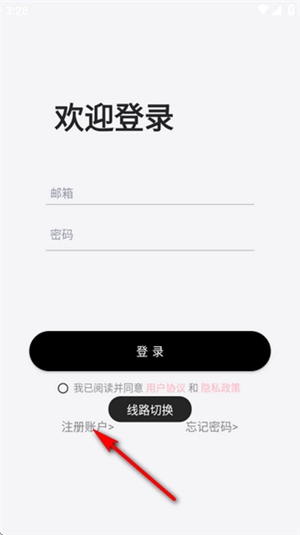 1、将apk软件安装完成后,打开软件进入登录界面,然后选择注册账户。