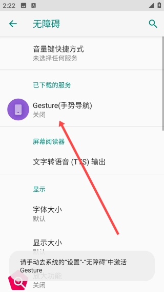 1、开启gesture手势导航功能,具体操作是点击【开启手势导航】选项。