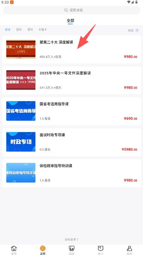2、在课程列表页面进行浏览,从中找到“聚焦二十大 深度解读”这一课程条目。