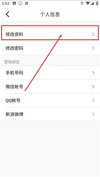 3、进入个人信息页面后,点击【修改资料】选项,即可进入资料编辑界面,对个人信息进行调整和完善。