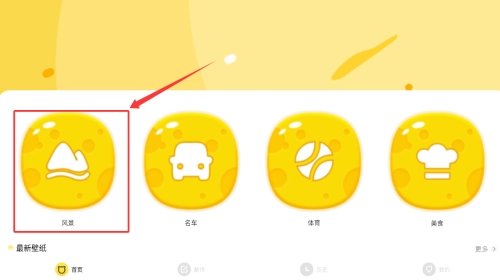 2、在首页分类栏,点击红色箭头所指的风景。